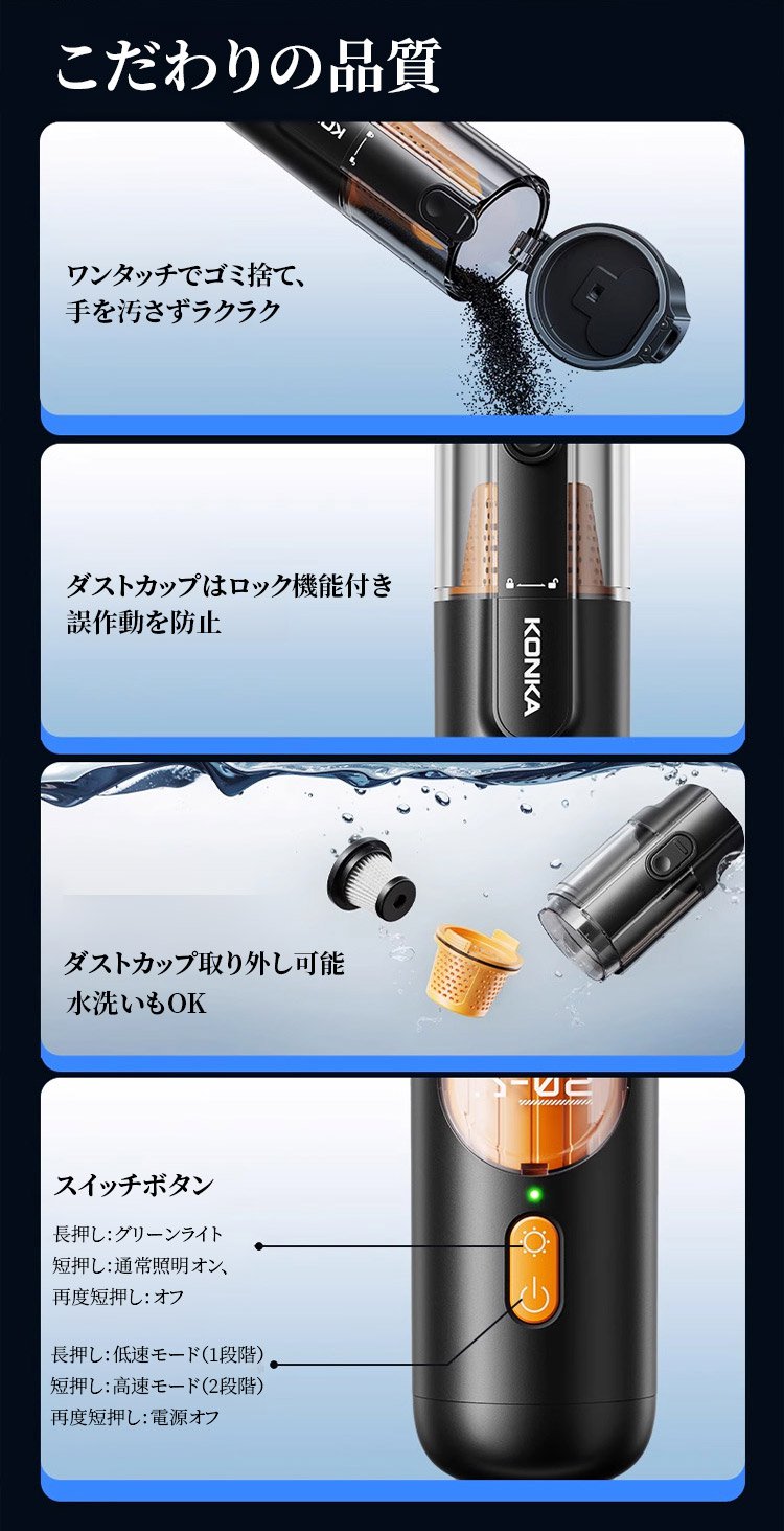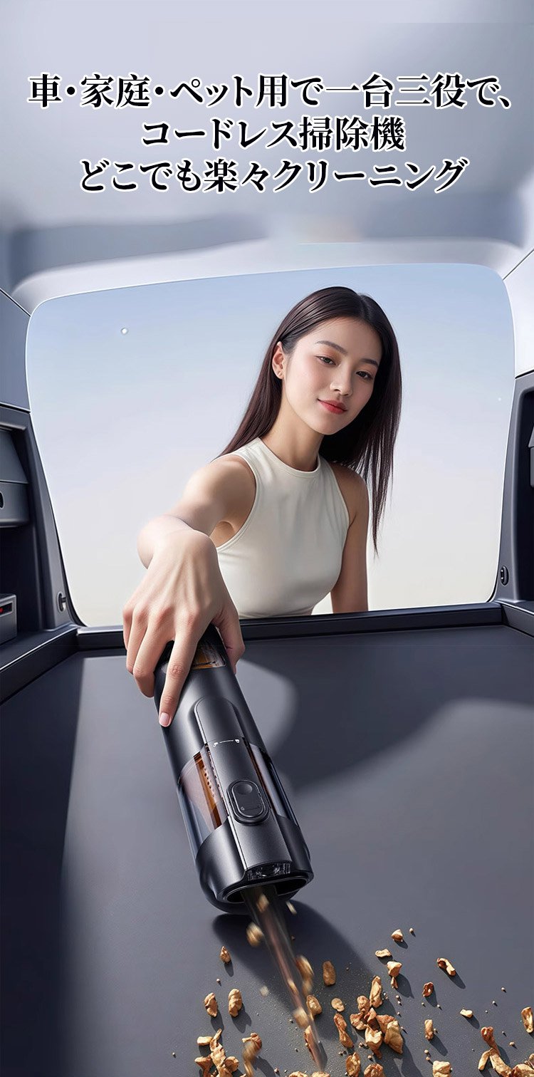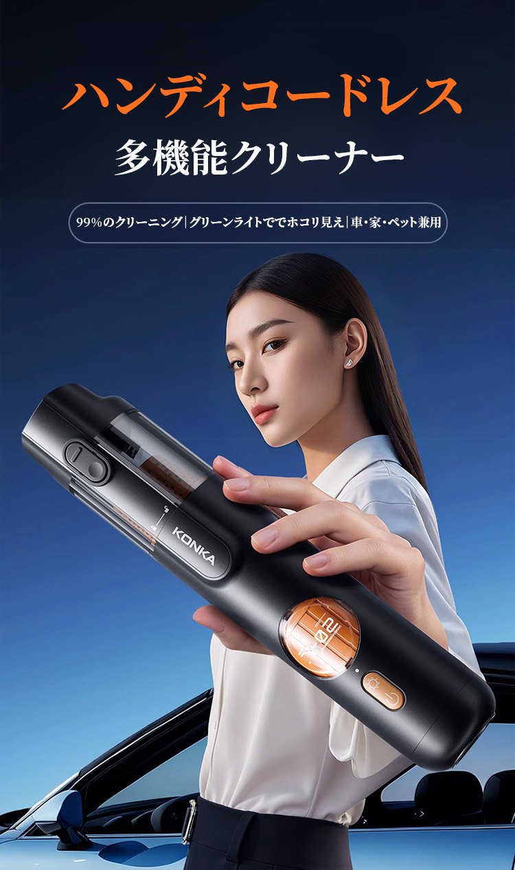 5-in-1スマートハンディクリーナー | 車·家·ペット兼用、99%の洗浄効果、グリーンライトでダニ可視化